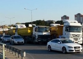 Anadolu Yakası'ndaki hafriyat alanlarının kapatılmasına tepki gösteren kamyoncular Şile Otoyolu'nda kontak kapattı....